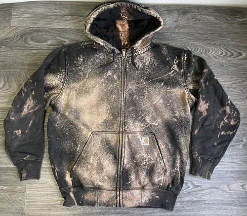 Carhartt Hooded Sweatshirt Full Zip Hoodie Heavy Custom Bleach Acid Wash Black L Ebay